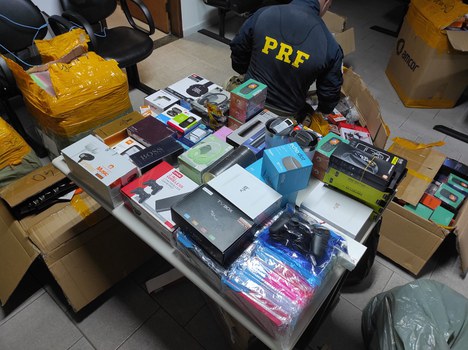 A Polícia Rodoviária Federal (PRF) apreendeu várias mercadorias de origem estrangeira, na noite desta segunda-feira (30/01), no Km 679 da BR 381, em Perdões (MG).