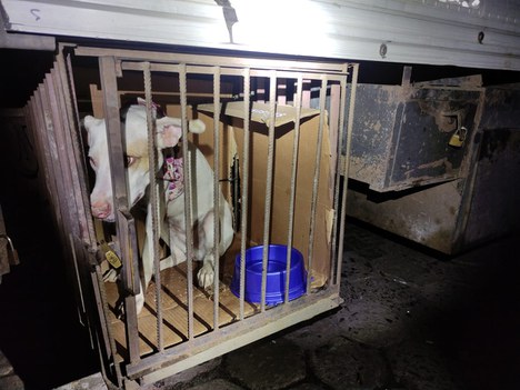 PRF resgata cachorra vítima de maus-tratos sendo transportada na parte externa de um caminhão na BR-251