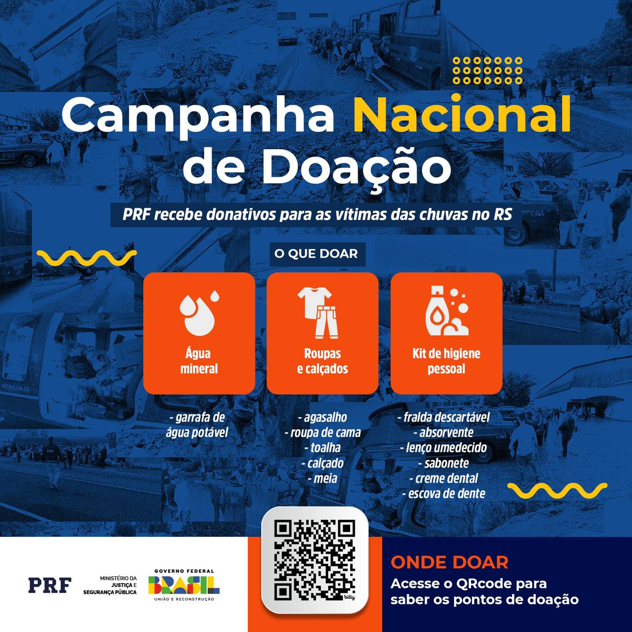 A população já pode realizar a entrega de donativos nas Unidades da Polícia Rodoviária Federal em Minas Gerais. Os locais podem ser conferidos realizando a leitura do QR-Code existente na imagem da campanha abaixo.