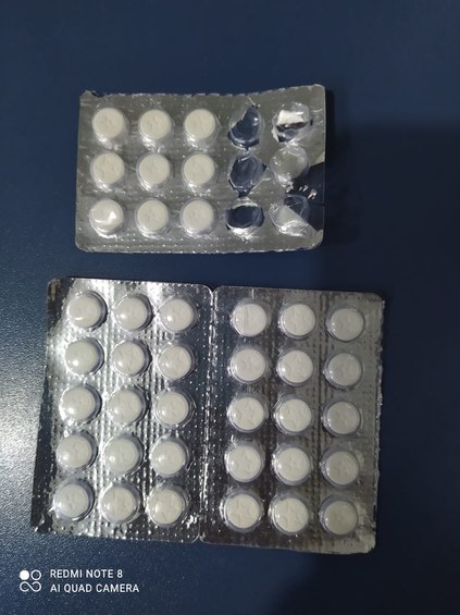 Durante a abordagem, os policiais realizaram uma inspeção na cabine do caminhão com a presença do condutor onde foi encontrado 3 (três) cartelas contendo 43 (quarenta e três) unidades de anfetamina (Nóbesio Forte).