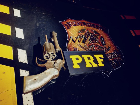 Durante a abordagem, os policiais realizaram uma revista no interior do veículo, quando foi encontrado 1 (um) revólver calibre .38 e 5 (cinco) munições.