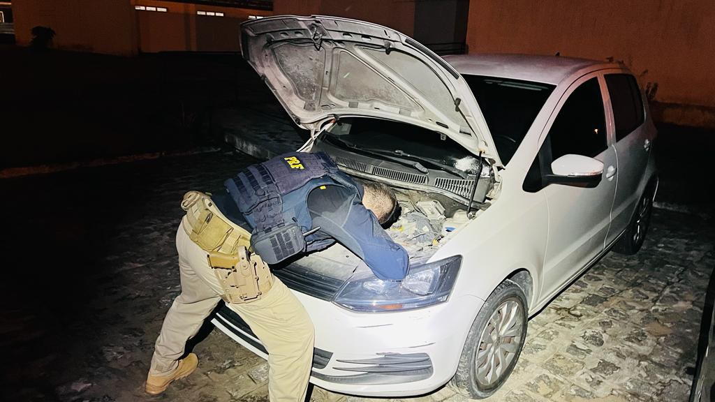 A última ocorrência criminal flagrada pela PRF ontem (23) ocorreu no município de Cabedelo, por volta das 22h, na BR 230, km 11, quando equipe do Comando de Operações Especiais (COE) da PRF visualizou um VW/Fox com dois ocupantes realizando manobra brusca ao avistar a equipe policial. A tentativa de desviar da fiscalização não foi bem sucedida, o veículo foi abordado logo após a manobra inesperada. Durante a fiscalização foi realizada uma inspeção minuciosa, que localizou aproximadamente 91,76 gramas de material análogo a haxixe e 88,64 gramas de material análogo à maconha, balança de precisão e R$392,05 em cédulas trocadas. Dentro do carro foi encontrado uma pistola 380 com dois carregadores, munições e um dispositivo para realizar disparos contínuos, conhecido como “kit rajada”. Através da expertise policial foi possível identificar que o automóvel estava adulterado, por meio de consultas aos sistemas de segurança com os elementos identificadores originais foi possível verificar que ele tinha um registro de roubo em maio de 2022 em Recife/PE. Diante dos fatos, o condutor, um homem de 30 anos e a passageira, uma mulher de 34 anos, foram detidos e encaminhados para a Central de Polícia, onde poderão responder por porte ilegal de arma de fogo de uso permitido, tráfico de drogas e receptação.