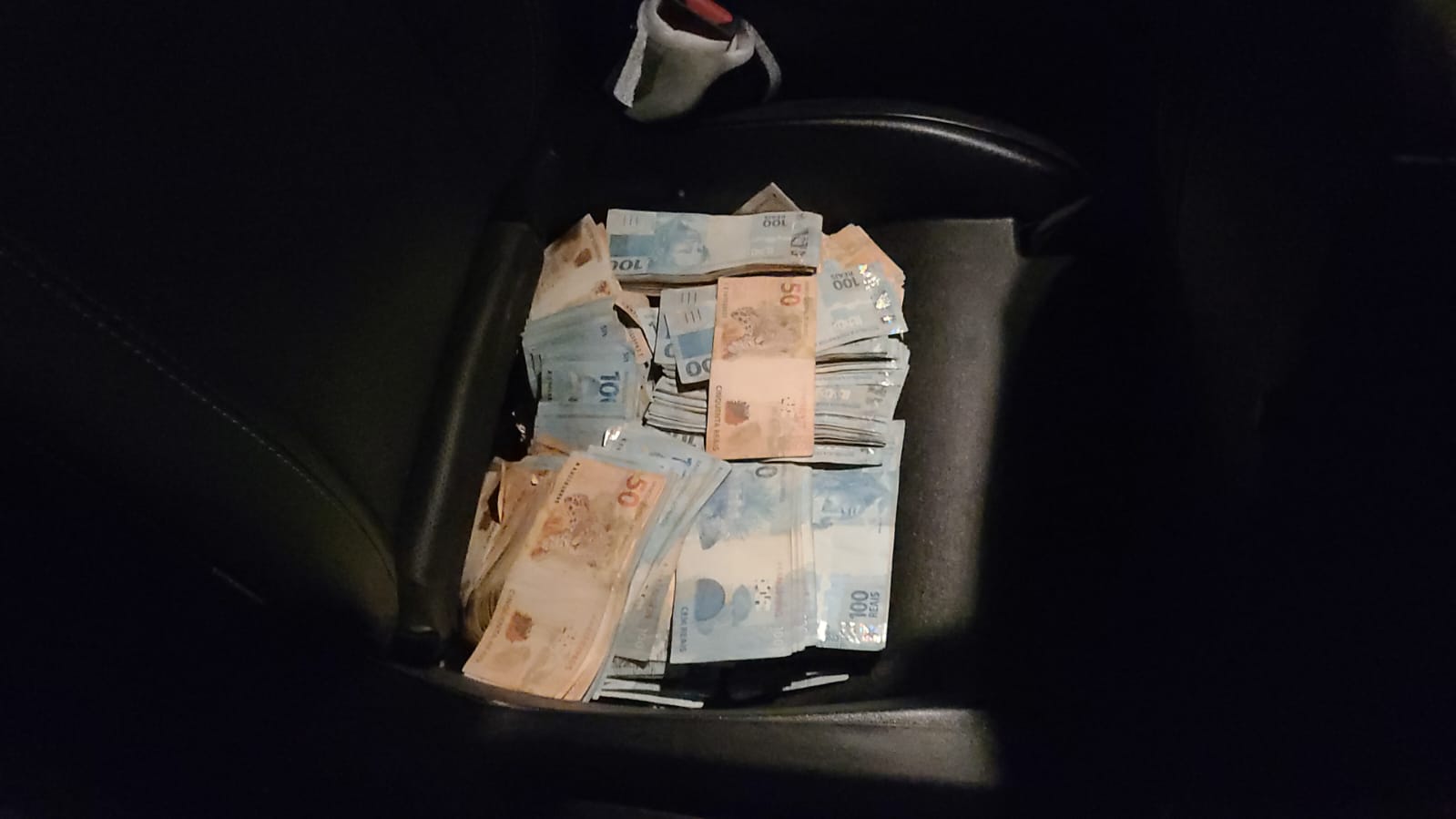 Durante a abordagem, os ocupantes desceram do carro apresentando nervosismo e uma certa resistência, afirmando terem se perdido. Após a identificação pessoal, os policiais encontraram caixas e sacolas contendo diversas cédulas de 50 e 100 reais em grande quantidade no interior do veículo.