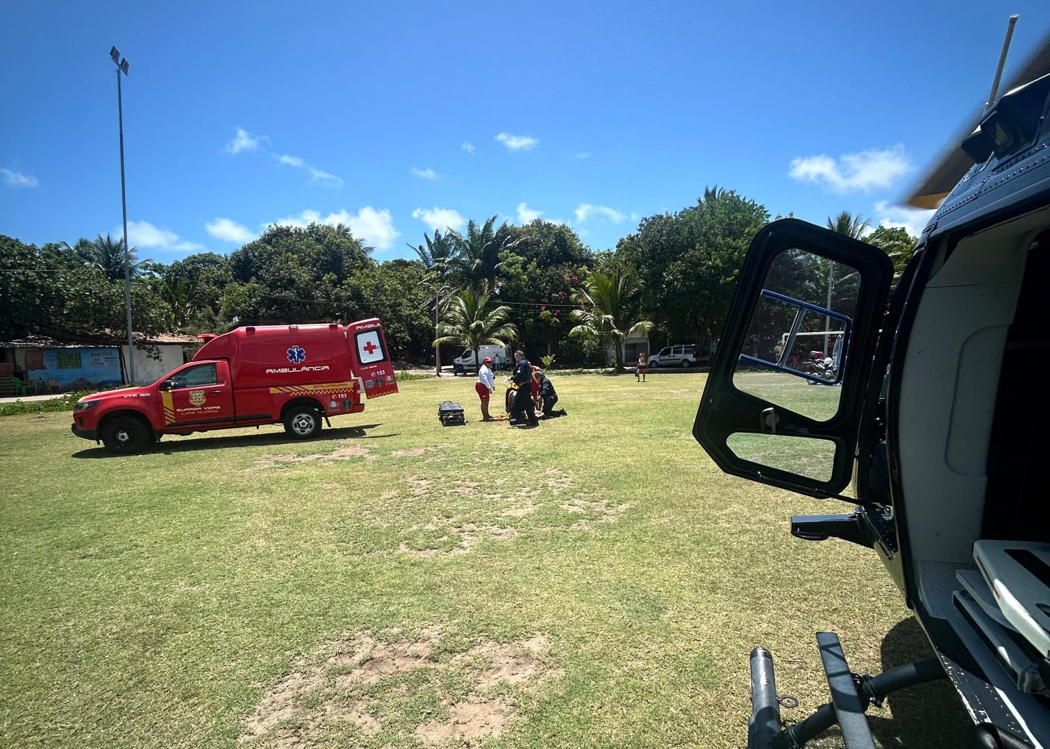 Após receber o atendimento pré-hospitalar, a vítima foi encaminhada de helicóptero até o campo do Derby. De lá, ele seguiu de ambulância para o Hospital da Restauração, no Recife.