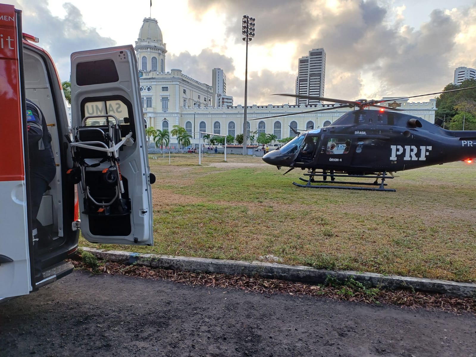 Com auxílio do serviço aeromédico, fundamental para a manutenção do estado fisiológico estável da paciente, ela foi rapidamente transferida até o campo do Derby, na área central do Recife. De lá, seguiu de ambulância até a Fundação de Hematologia e Hemoterapia de Pernambuco (Hemope), no bairro das Graças, na Zona Norte da capital.
