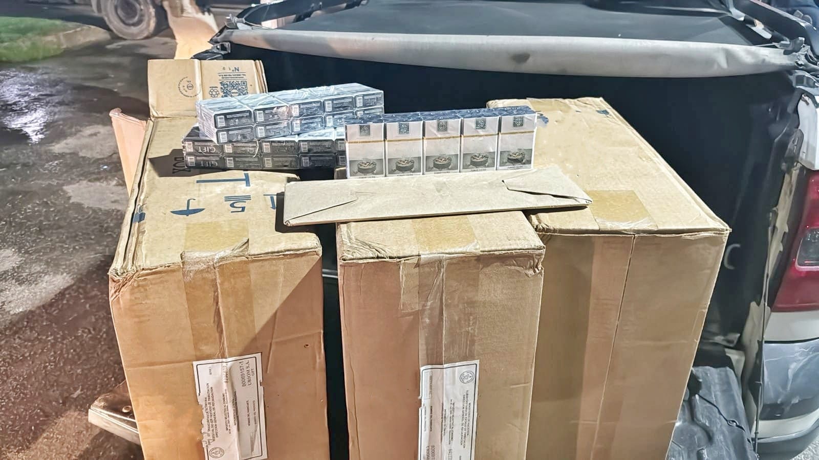 Durante uma operação de segurança viária, foi dada a ordem de parada ao condutor de uma caminhonete, que desobedeceu e acelerou, mas foi alcançado logo em seguida. Quando abordado, o condutor admitiu que tentou fugir da fiscalização pois transportava três caixas de cigarros de uma marca paraguaia.