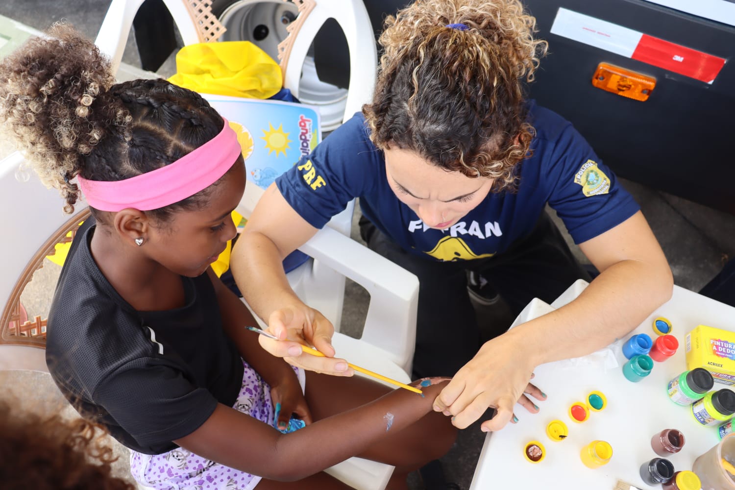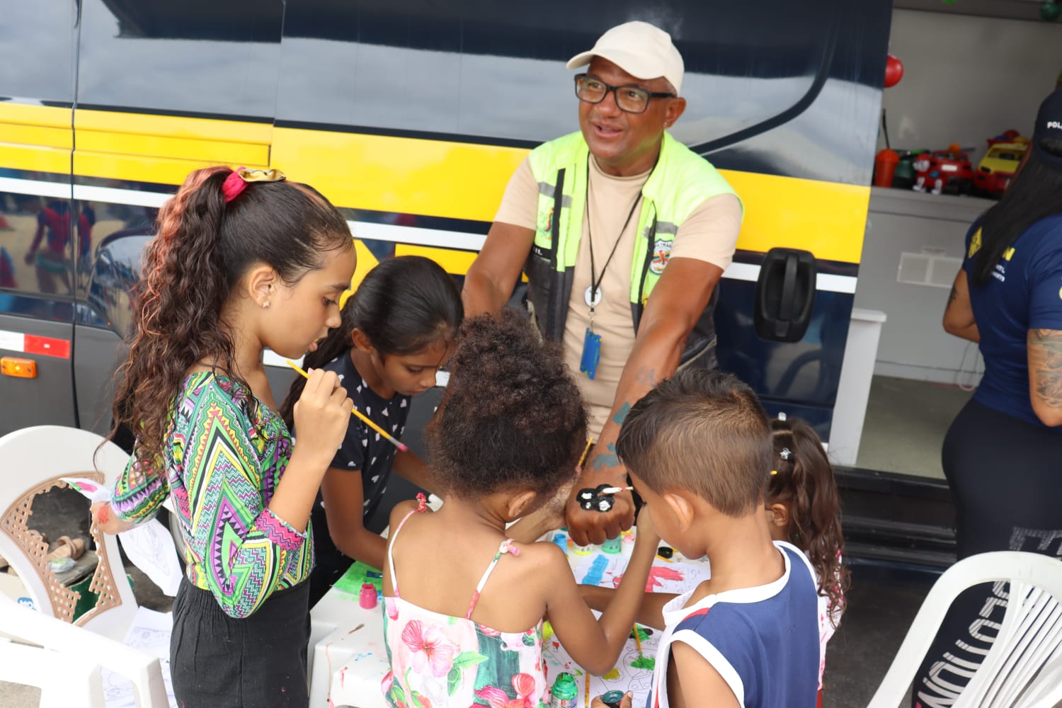 As crianças participaram de brincadeiras, assistiram a apresentações dos cães farejadores, conheceram de perto as viaturas, tiraram fotos com super-heróis e receberam brinquedos arrecadados em uma campanha solidária.