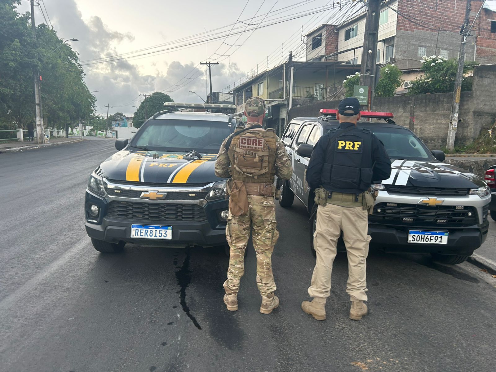 Policiais realizavam uma fiscalização da Operação Ultima Ratio, quando receberam informações de que um carro estava sendo utilizado para praticar assaltos na região. As equipes avistaram o veículo suspeito seguido por uma caminhonete e iniciaram o acompanhamento dos veículos.