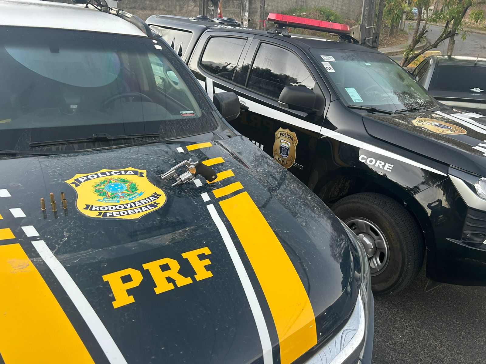 Uma viatura falsa da polícia e um revólver calibre 38 foram apreendidos, na madrugada desta quinta-feira (21), na BR 408, em São Lourenço da Mata, no Grande Recife. A ação conjunta entre a Polícia Rodoviária Federal (PRF) e a Polícia Civil de Pernambuco, por meio do Comando de Recursos Especiais (CORE), resgatou reféns de um assalto que havia acabado de ser praticado.