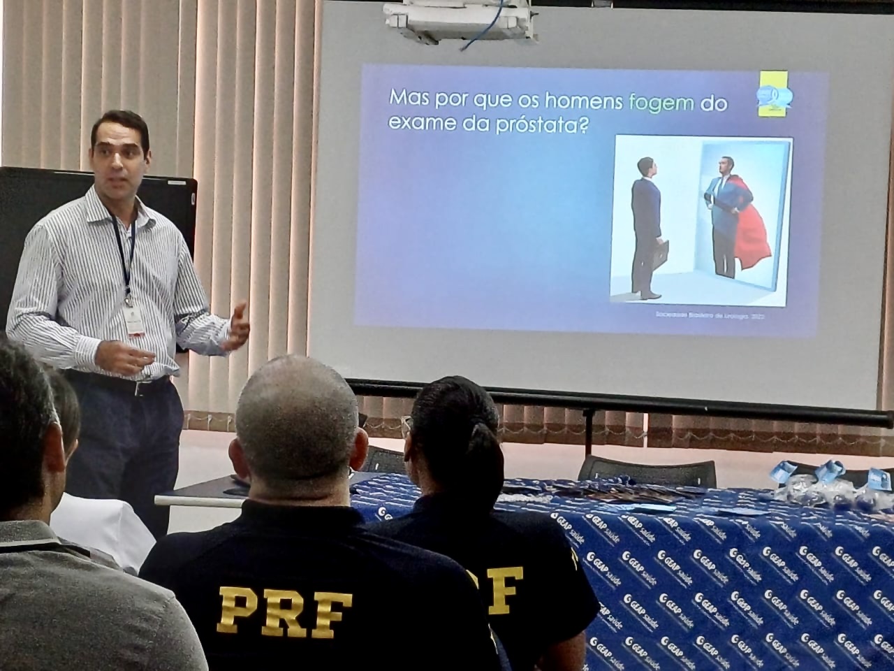 O encontro foi realizado na sede da Superintendência, localizada no bairro do Pina, no Recife. A palestra foi ministrada pelo doutor urologista Renato Leal, que compartilhou informações valiosas sobre a importância da prevenção e cuidados com a saúde masculina, visto que muitos que sofrem da doença podem conviver com ela por anos, sem apresentar qualquer sintoma. Cerca de 25 servidores PRF, administrativos e terceirizados participaram, atentos às orientações que além de prevenir o adoecimento, também melhora a qualidade de vida.