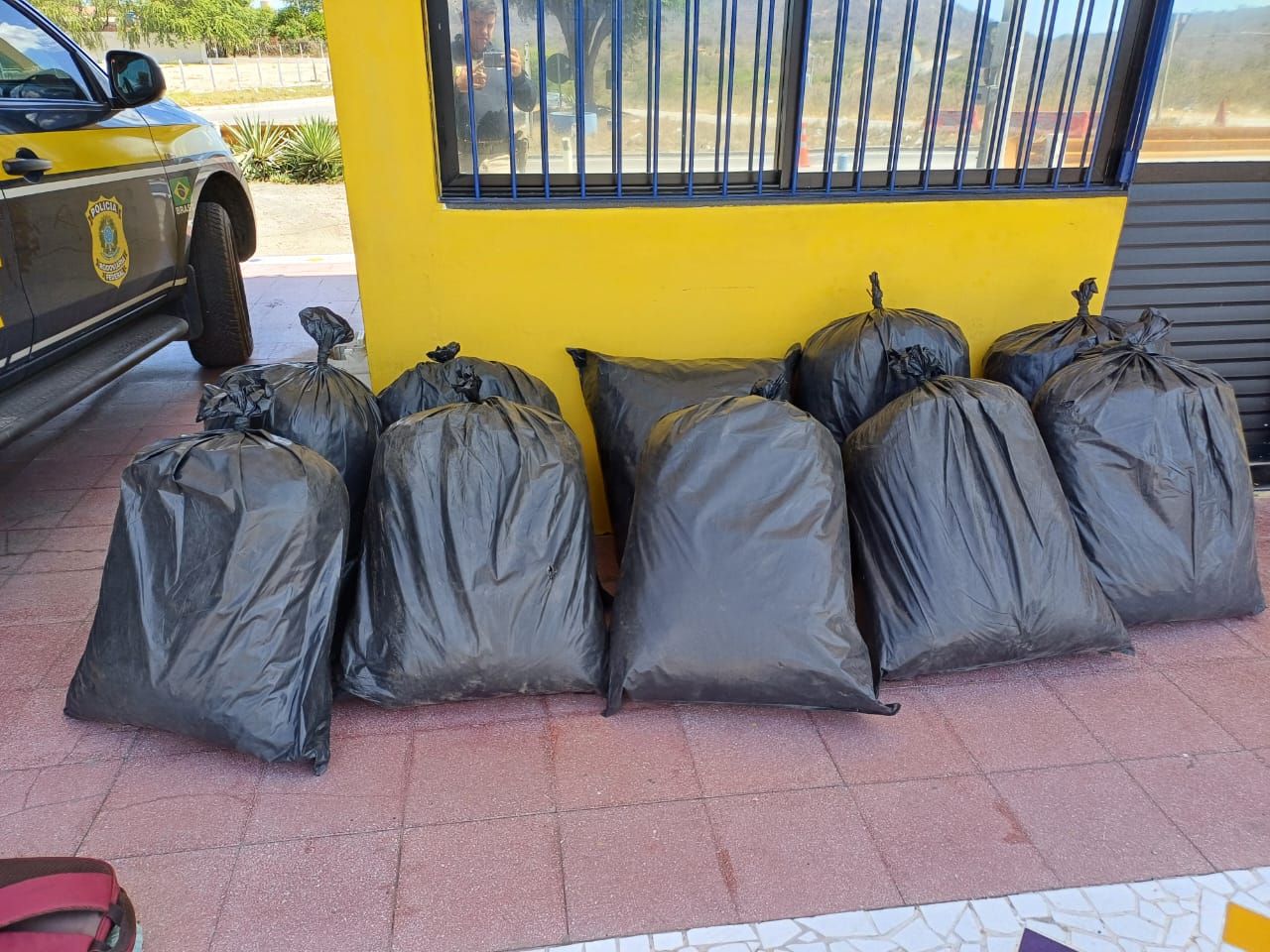 Policiais realizavam uma fiscalização no Km 278 da rodovia, quando abordaram uma caminhonete com placas do Mercosul. Durante a abordagem, a equipe sentiu um odor típico de maconha e constatou que eram transportados 10 sacos da droga no interior e no porta-malas do veículo.