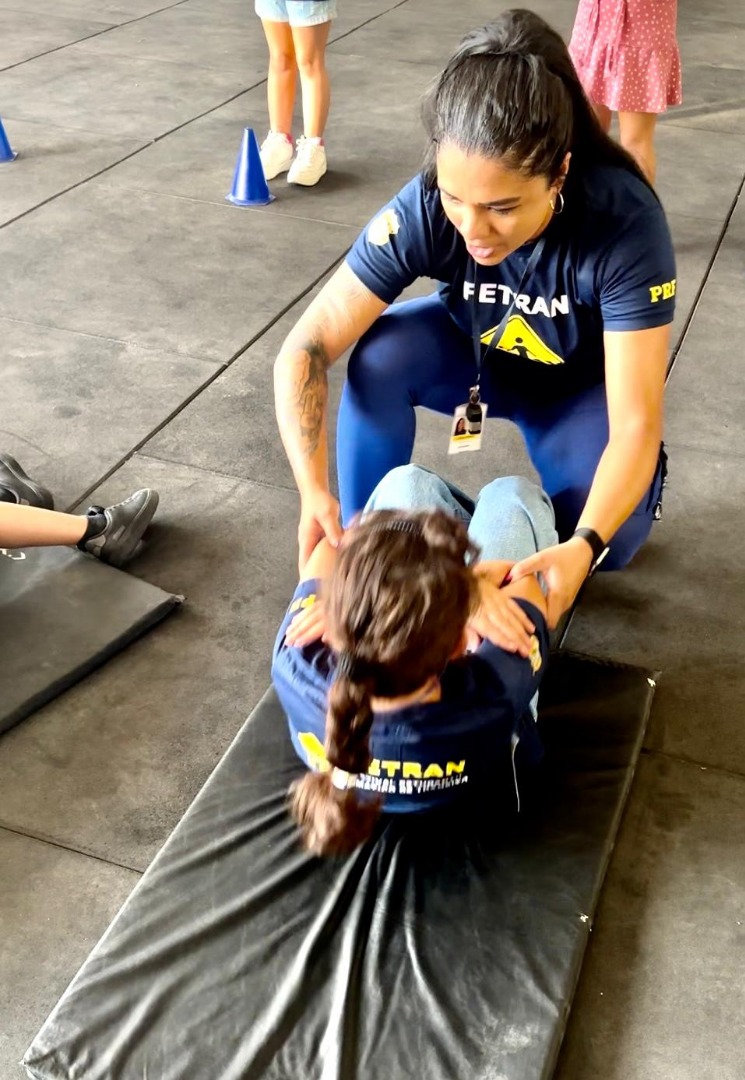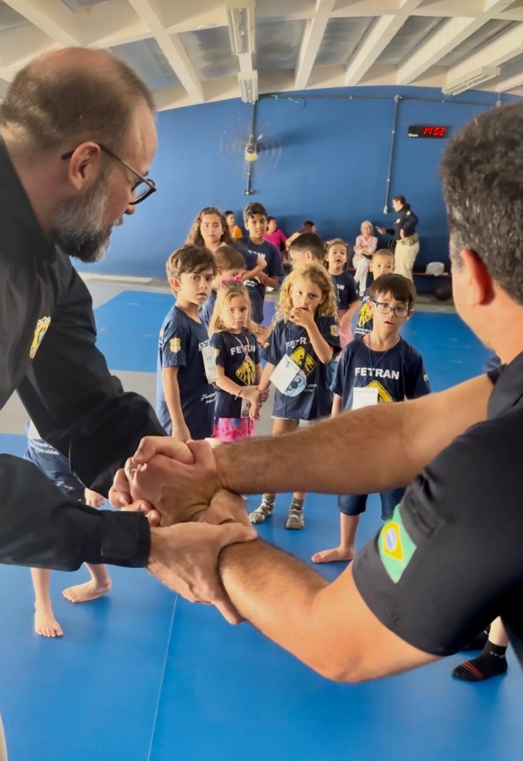 E como criança tem energia de sobra, a programação contou também com oficinas que simulavam um Teste de Aptidão Física (TAF) e um treinamento de defesa pessoal. Apesar de aproximar os pequenos da realidade dos PRFs, tudo era tratado como uma grande brincadeira.