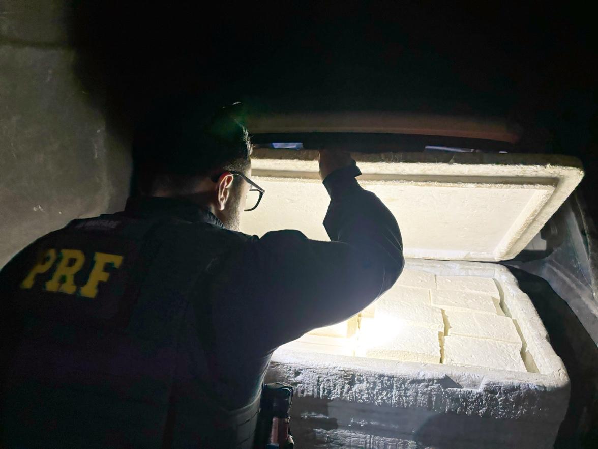 Policiais realizavam uma blitz no posto da PRF de Cruzeiro do Nordeste, quando abordaram um furgão. Ao verificar o interior do veículo, foi encontrado um isopor com dezenas de barras de queijo sem refrigeração e sem a documentação fiscal.