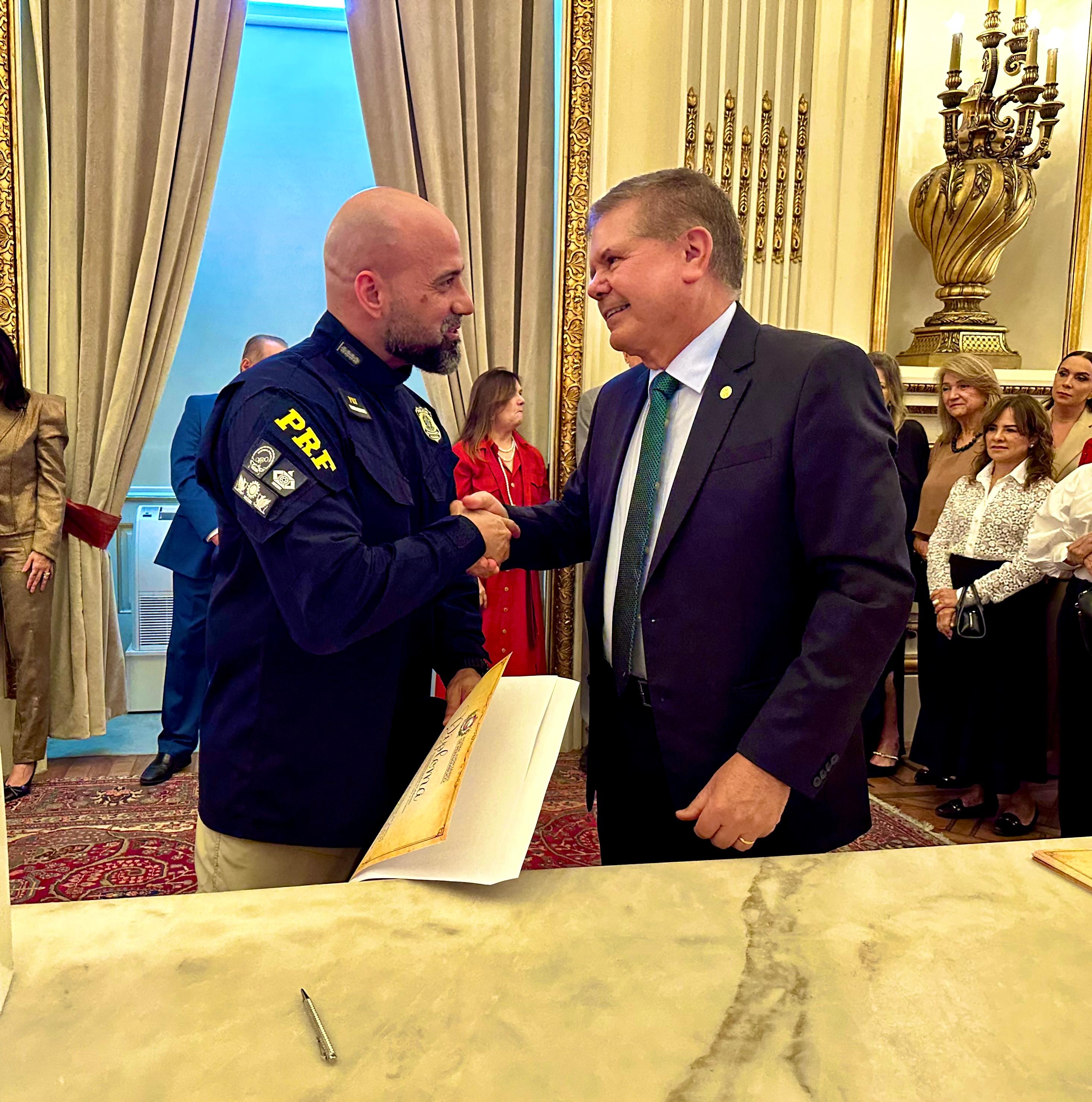 “Recebo esta honraria com profundo senso de responsabilidade e gratidão. Divido este reconhecimento com todos os homens e mulheres da PRF que, diariamente, dedicam suas vidas ao serviço da sociedade", destacou o superintendente da PRF-PE, Cleiton Medeiros.