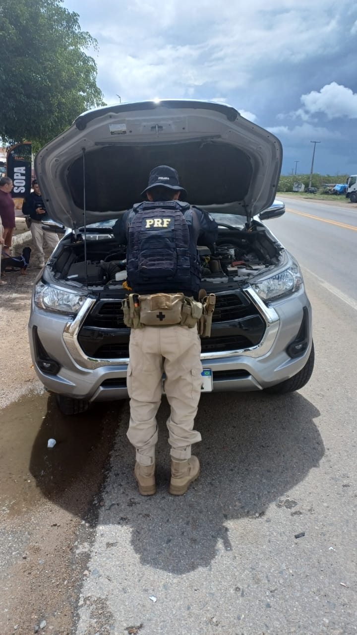 Em Tacaimbó, durante uma fiscalização na BR-232, foi dada a ordem de parada a uma caminhonete. Ao iniciar a vistoria veicular, a equipe verificou diversos sinais de adulteração em elementos identificadores, constatando logo em seguida o registro de roubo em outubro do ano de 2024, em Recife. O condutor alegou que trocou outra caminhonete pelo veículo e ainda parcelou R$50 mil, através de uma transação com um homem em Arcoverde, no Sertão.