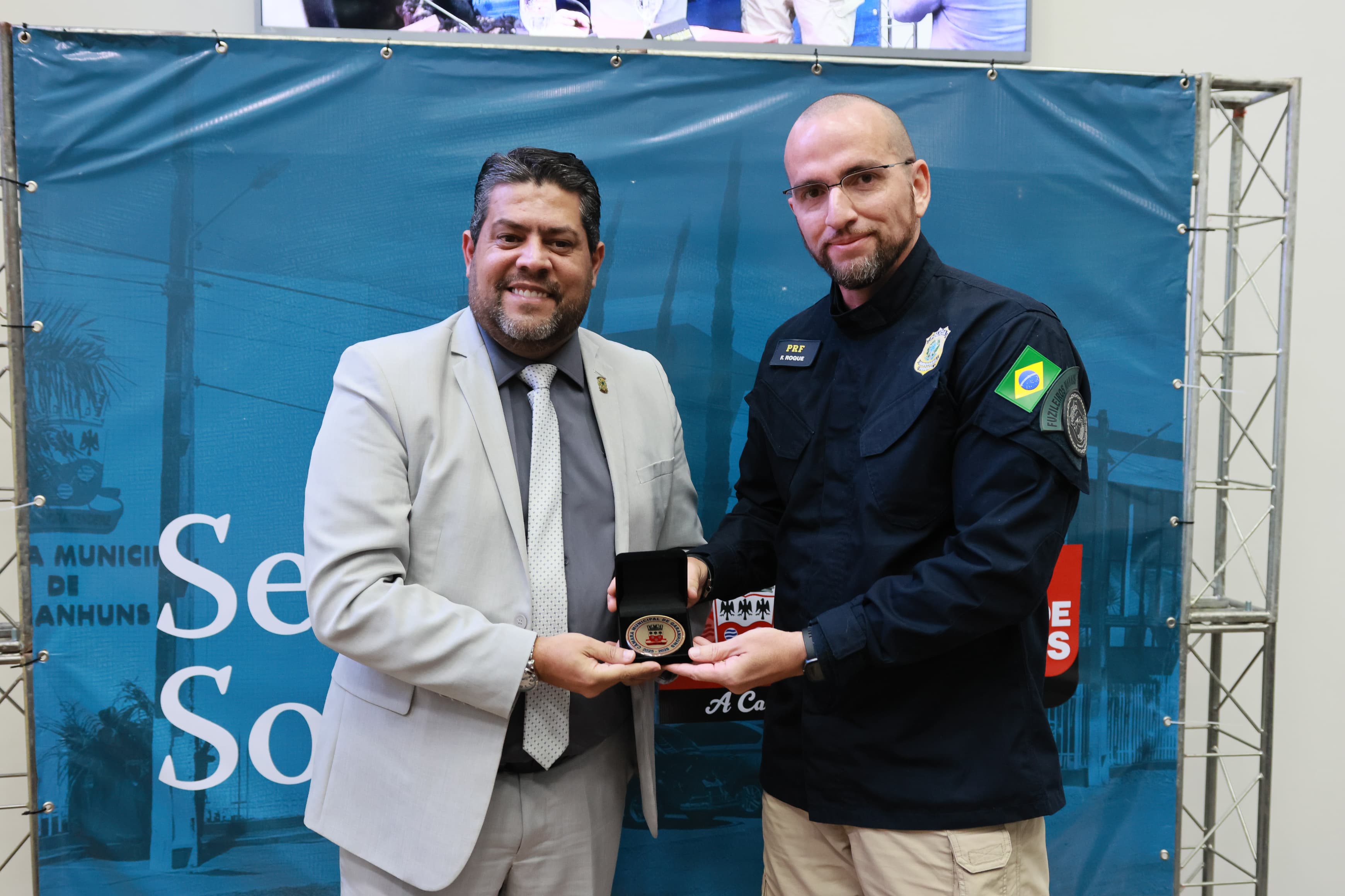 Como forma de reconhecer os serviços relevantes prestados na área da Segurança Pública, foi realizada na Câmara Municipal de Garanhuns a entrega da medalha Cabo Cobrinha ao Policial Rodoviário Federal (PRF) Flávio Roque. A solenidade aconteceu na quinta-feira (15), na sede do órgão legislativo da cidade.