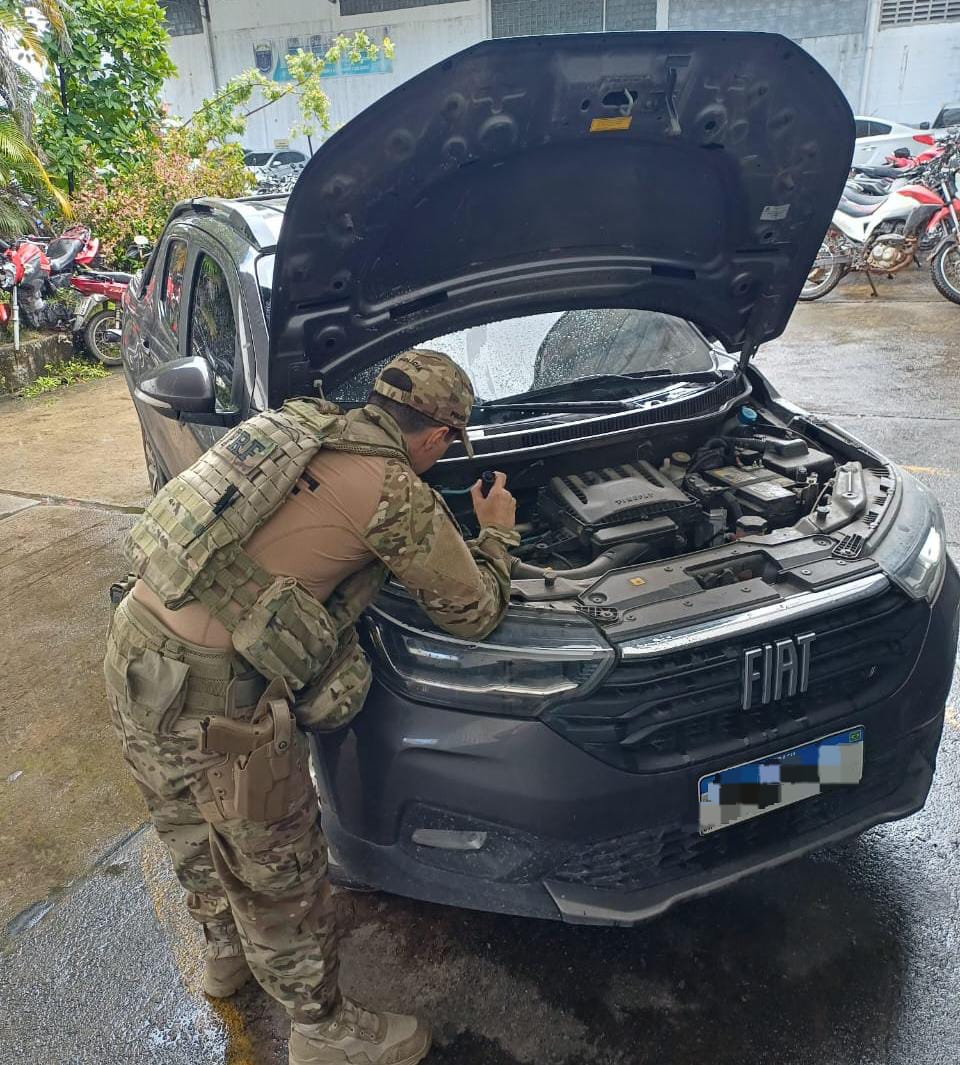 Após verificação, a equipe constatou que a caminhonete possuía um registro de roubo em fevereiro deste ano em Minas Gerais.