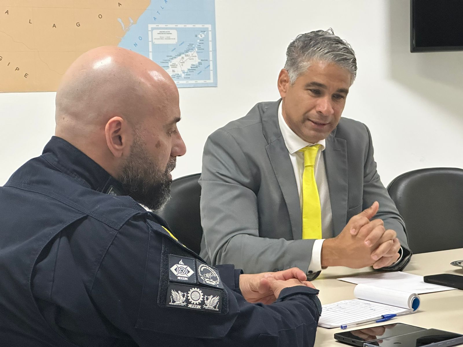 Na manhã desta terça-feira, o Superintendente da Polícia Rodoviária Federal em Pernambuco, Cleiton Medeiros, recebeu o Secretário Municipal de Defesa Social do Cabo de Santo Agostinho, Julierme Moura, na sede do órgão, localizada no bairro do Pina, no Recife.