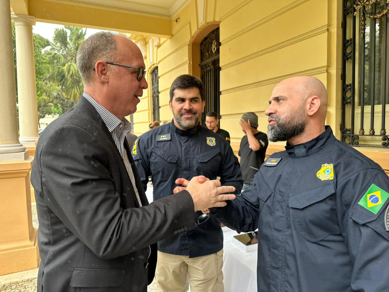 A Polícia Rodoviária Federal (PRF) participou, nesta segunda-feira (8), da solenidade de entrega de equipamentos realizada pelo Governo de Pernambuco dentro do programa Juntos pela Segurança. O evento aconteceu no Palácio do Campo das Princesas, no bairro do Recife.