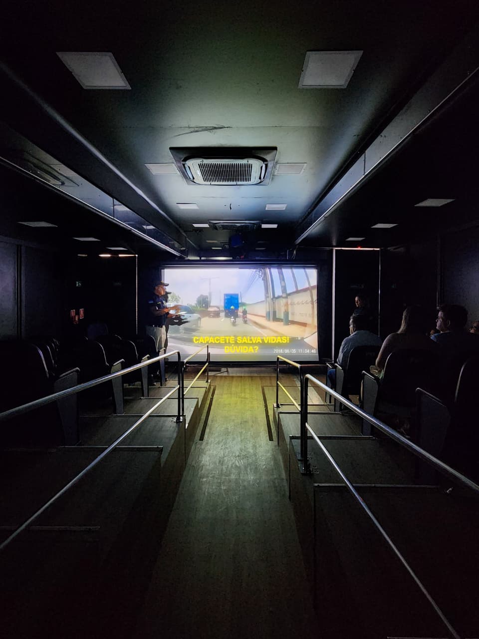 O veículo funciona como uma sala de cinema e ficará estacionado na Unidade Operacional da PRF em Igarassu entre os dias 21 e 30 de janeiro, e na praça de Cruz de Rebouças entre 02 e 07 de fevereiro para receber o público que passa pelo local.