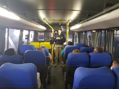 Os policiais também alertaram sobre a acomodação correta das bagagens, que deve ser transportada preferencialmente no bagageiro inferior dos coletivos. Dentro do veiculo, podem ser transportadas bagagens de mão que não coloquem em risco a segurança dos passageiros.