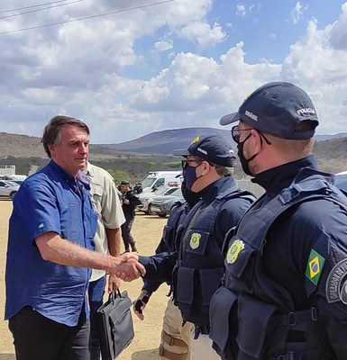 A Polícia Rodoviária Federal (PRF) realizou a escolta do Presidente da República, Jair Messias Bolsonaro, do Ministro do Desenvolvimento Regional, Rogério Marinho, e do ministro do Trabalho e Previdência, Onyx Lorenzoni, nesta quinta-feira (21), em Sertânia e Toritama, no Sertão e no Agreste de Pernambuco. A comitiva presidencial participou da entrega do Ramal do Agreste, que juntamente com as duas etapas da adutora do Agreste, irão beneficiar mais de dois milhões de pessoas.