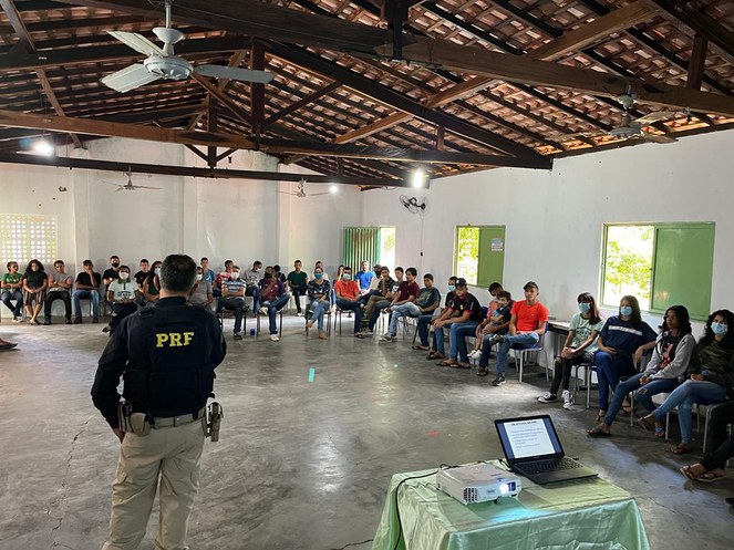 Na manhã de ontem (20), a PRF realizou uma ação educativa em Eliseu Martins para alunos e professores da Associação Escola Família Agrícola de Eliseu Martins e para representantes da Secretaria de Educação do Município. A ação alcançou aproximadamente 55 pessoas.