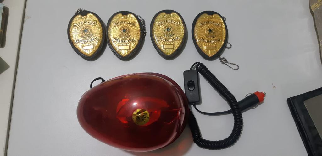 Ainda no veículo, os policiais encontraram armas, munições, drogas, distintivos, algemas, coletes balísticos, cintos táticos, cartões de crédito e uma quantia em dinheiro de aproximadamente R$ 70 mil reais, entre outros objetos.