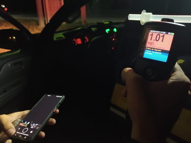 Após consultas ao sistema, foi identificado que o condutor é inabilitado. O mesmo apresentava sinais de embriaguez tais como, olhos vermelhos, voz embargada, desorientação e odor etílico. Após a realização do teste de alcoolemia constatou-se o teor de 1.01 miligramas de álcool por litro de ar expelido pelos pulmões.