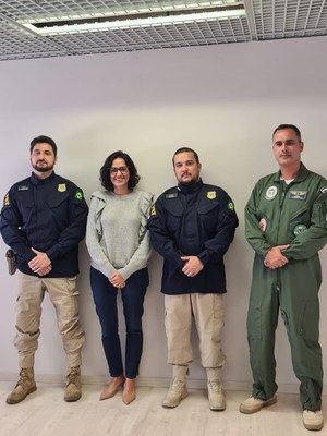 Participaram do encontro: Dra. Fernanda Fialho, Subsecretária de Assistência à Saúde; Tenente Coronel Rodrigo Medina, responsável pelo SOAer; Rafael Alvim, Superintendente Executivo da PRF-RJ e Rodrigo Carvalhal, Superintendente Executivo Substituto da PRF-RJ.