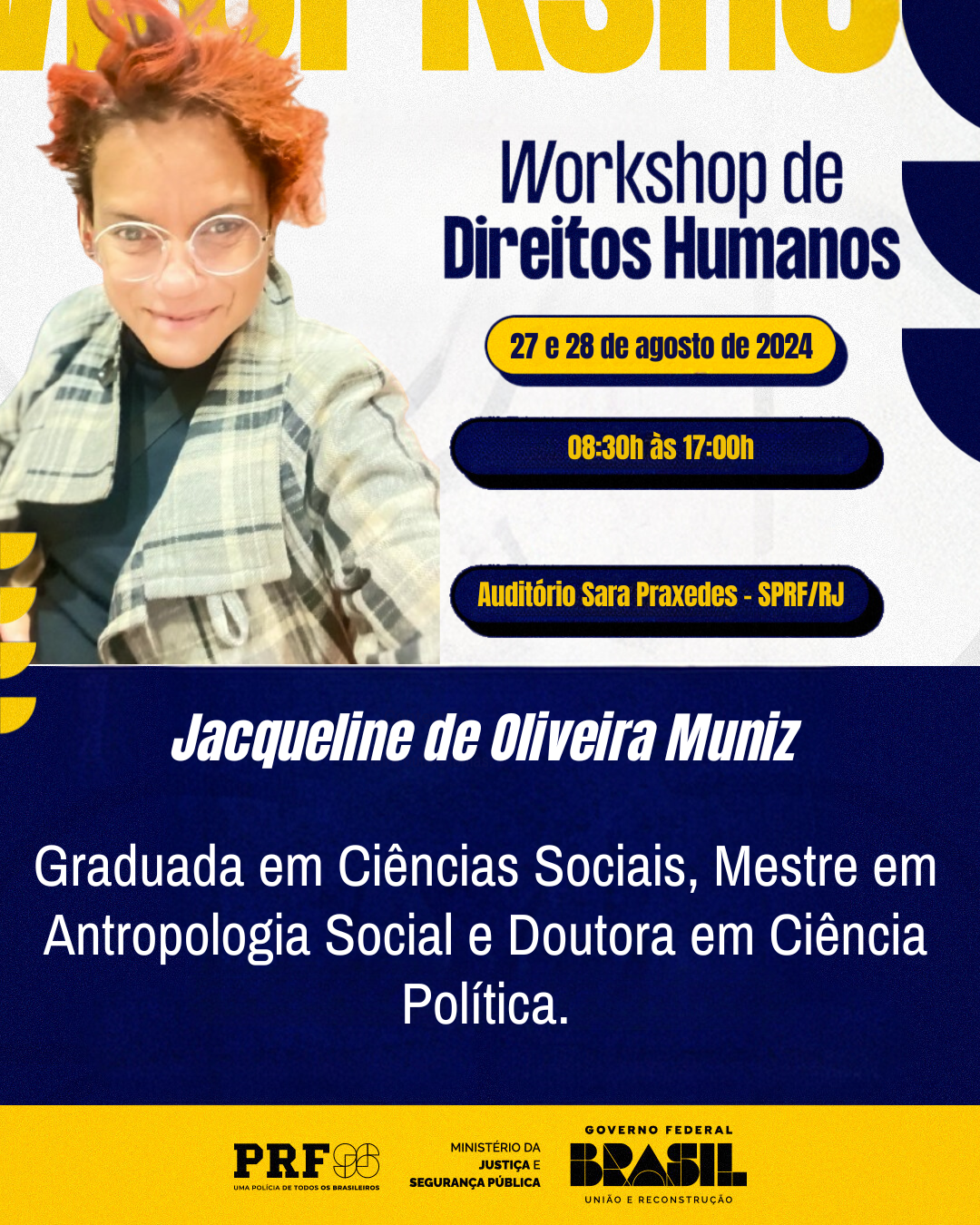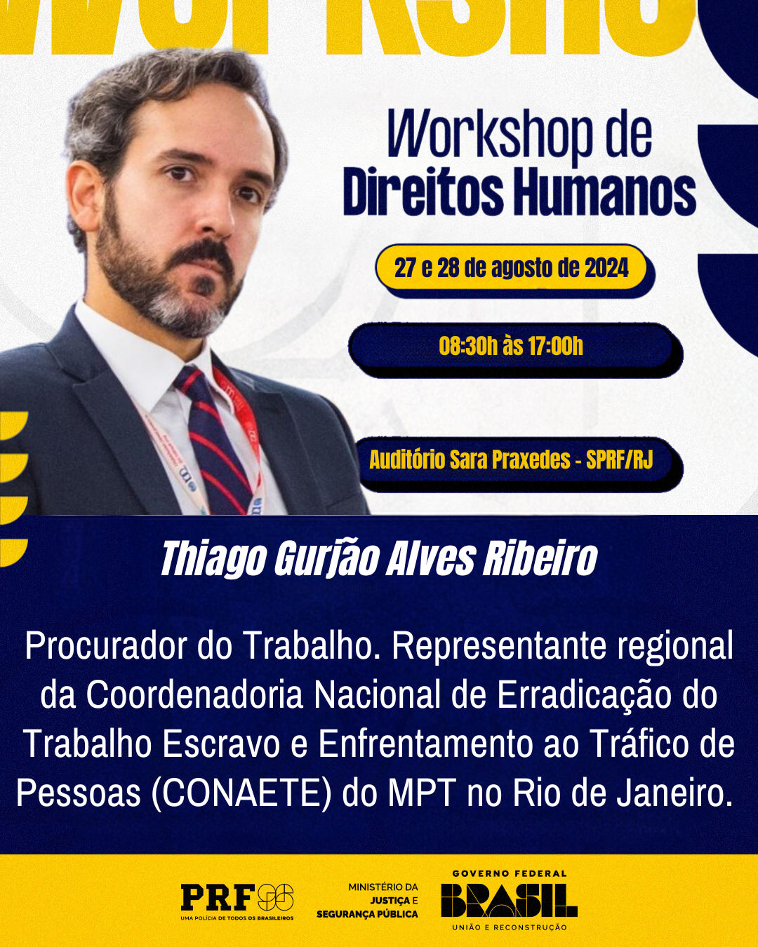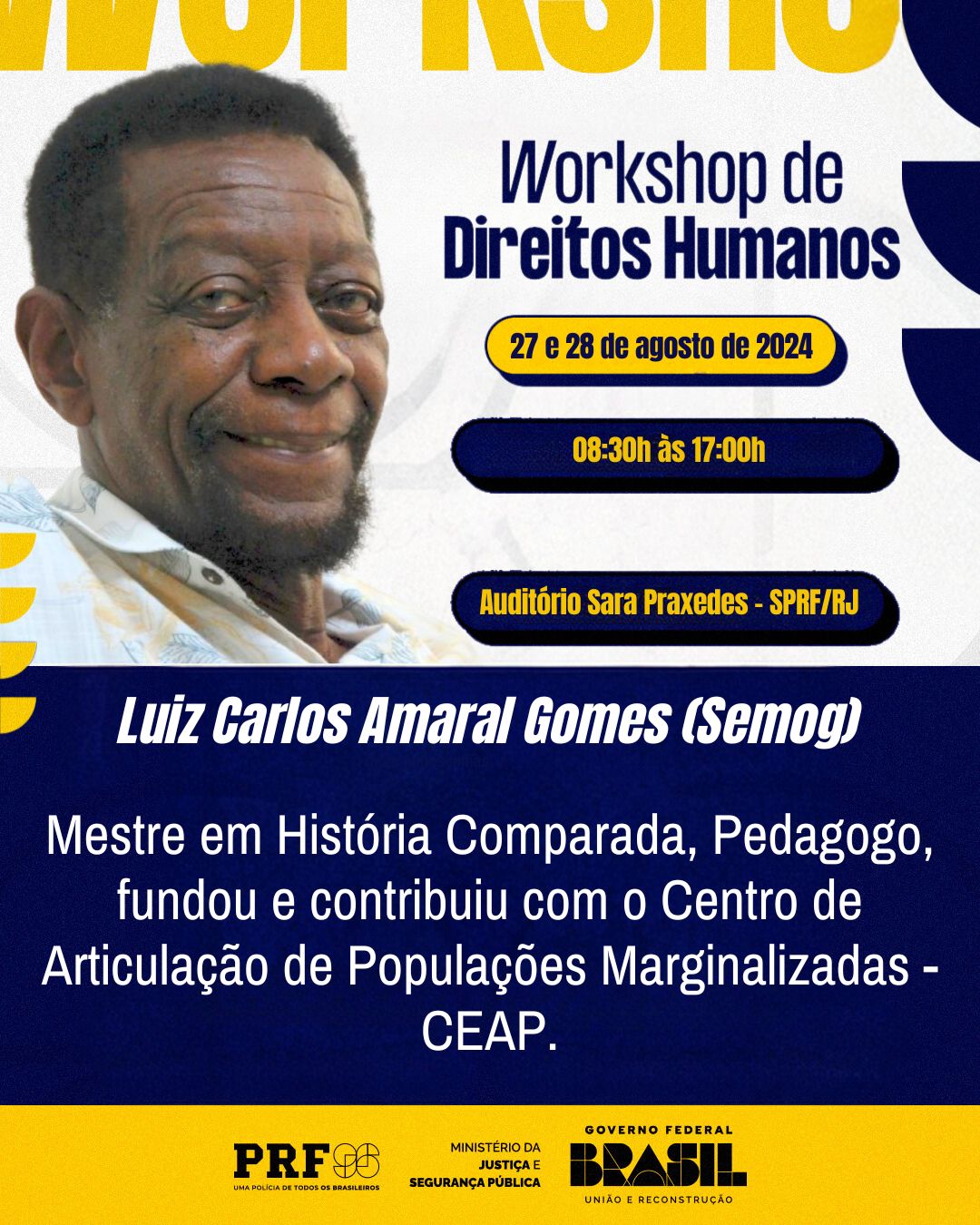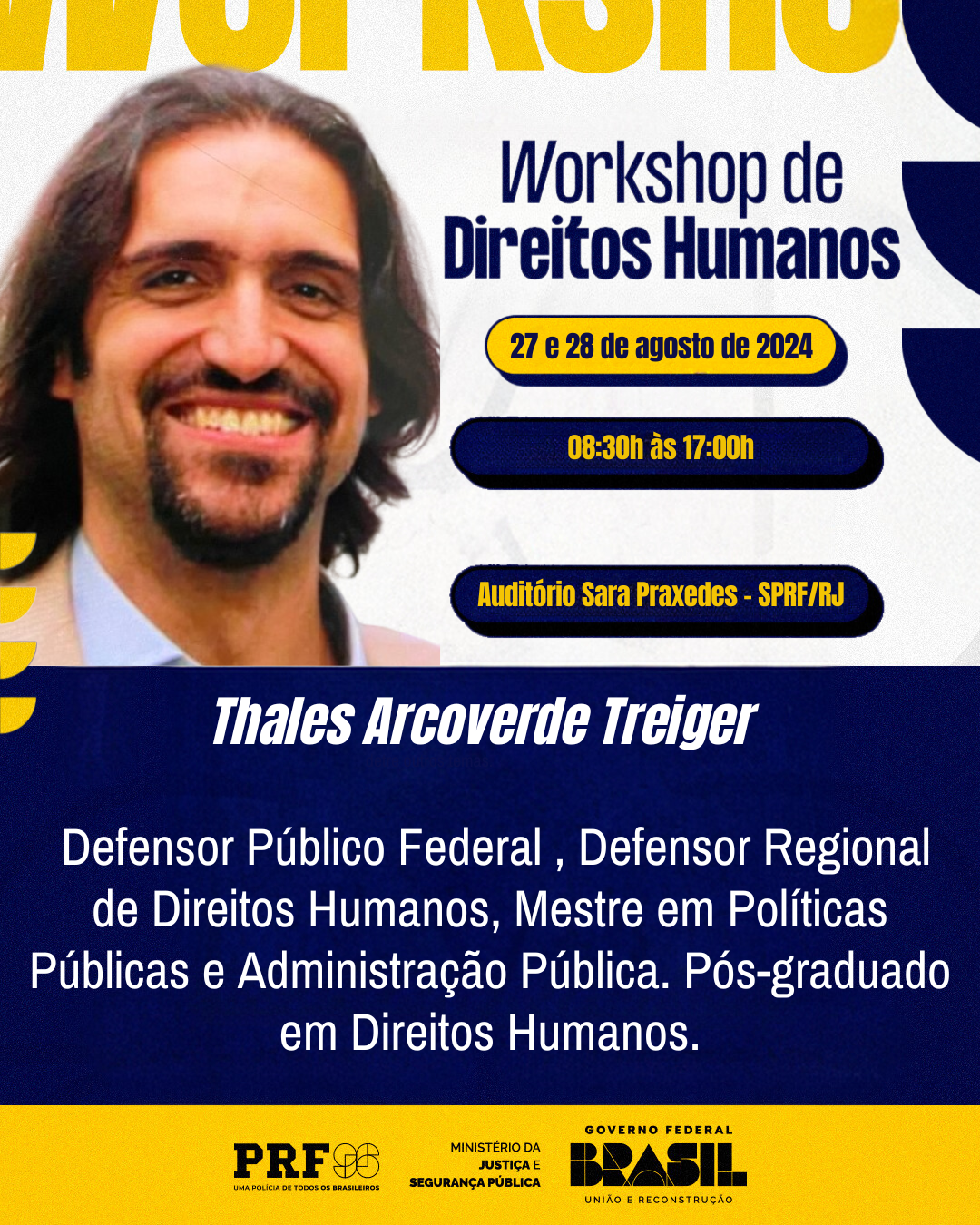 Com o objetivo de capacitar os integrantes atuais do Escritório de Direitos Humanos no âmbito da PRF/RJ em ações e políticas de prevenção e promoção de Direitos Humanos, além de instrutores e demais servidores interessados na temática, o Workshop reunirá especialistas para compartilhar conhecimentos e experiências sobre a aplicação dos princípios de Direitos Humanos no contexto policial.