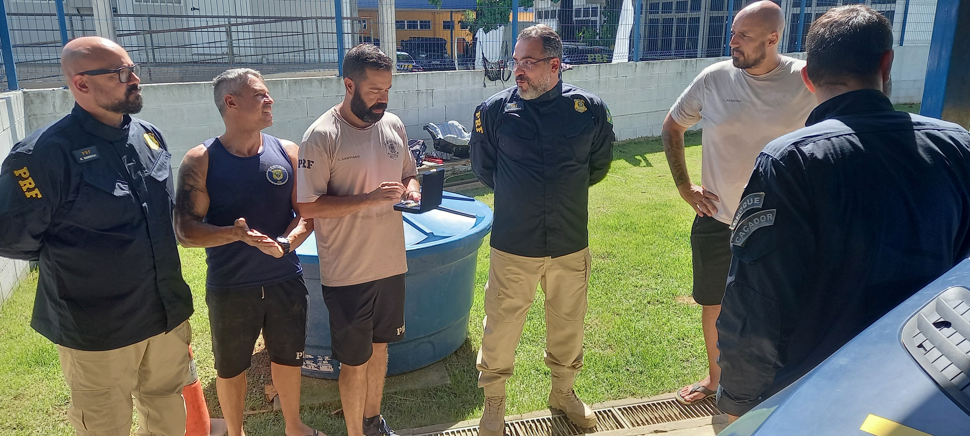 O policial rodoviário federal que salvou os cães farejadores de uma enchente no Rio de Janeiro, na madrugada de domingo (14), foi homenageado pela Polícia Rodoviária Federal (PRF). Carlos Santiago recebeu a Medalha de Bravura da instituição, concedida pelo diretor-geral, Antônio Fernando Souza Oliveira, em visita da equipe da direção à sede da superintendência, nesta segunda-feira (15).