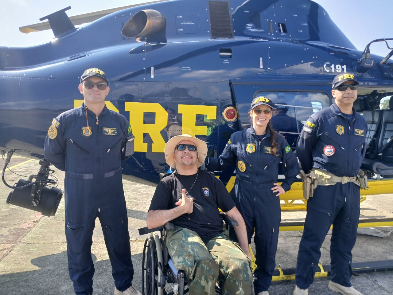 Um helicóptero da PRF também atraiu a atenção do público, com uma tripulação da equipe de operações aéreas, além de exposição de viaturas antigas da instituição e ações de educação para o trânsito.