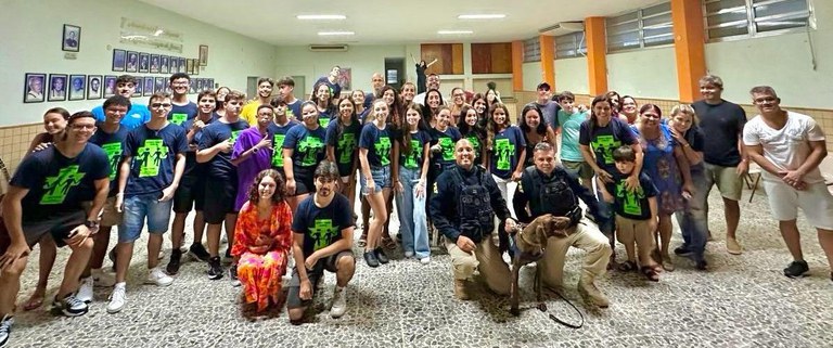 Na tarde deste domingo (17), o Grupo de Operações com Cães (GOC-RJ) da PRF, proporcionou uma palestra sobre prevenção e os males causados pelo uso de drogas. O evento contou com a participação de jovens e familiares da Paróquia Santuário das Almas, localizada no bairro de Icaraí, em Niterói.