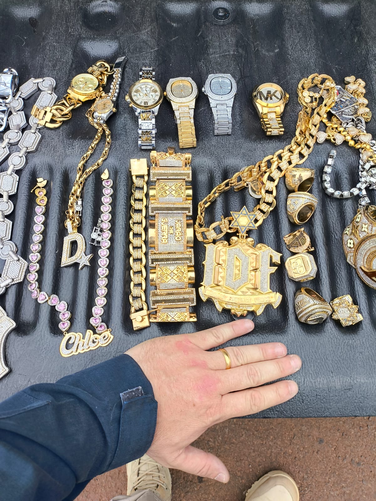 Os condutores transportavam a esposa, três filhos e um sobrinho do traficante, mas ele não foi encontrado. Em uma revista nos veículos, os policiais encontraram várias joias, as quais continham inscrições fazendo referência ao foragido da justiça que é líder de uma facção criminosa. O sobrinho do indivíduo afirmou ser o dono dos materiais.
