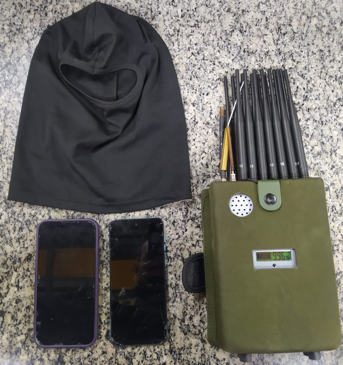 Com o detido, foram encontrados um aparelho bloqueador de sinais, usado em roubos para impedir o funcionamento de rastreadores, além de uma balaclava e dois telefones celulares.
