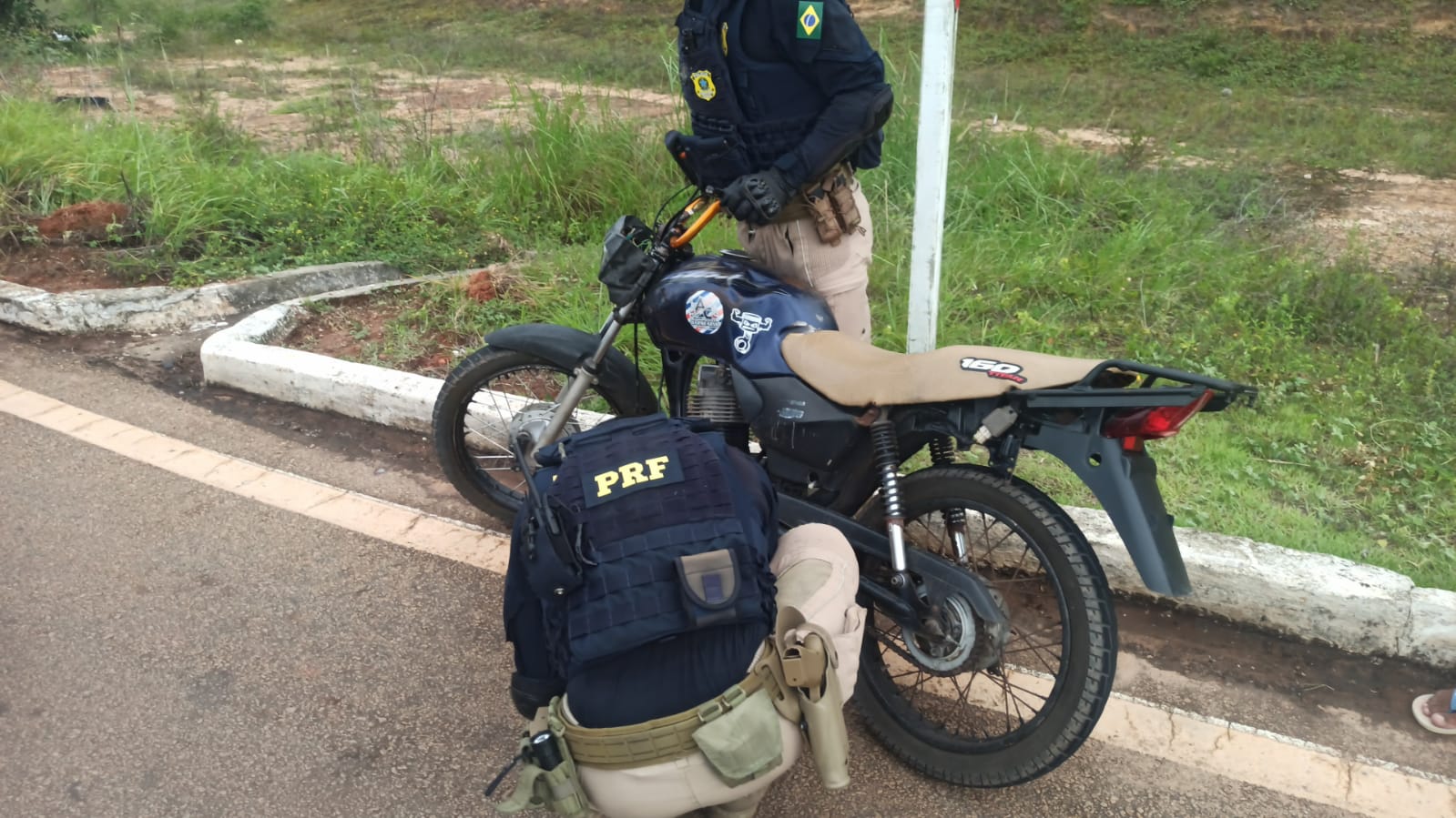 Um dos veículos possuía queixa de apropriação indébita e outro estava sem placa e com a numeração do motor e chassi adulteradas. Os dois condutores foram presos.