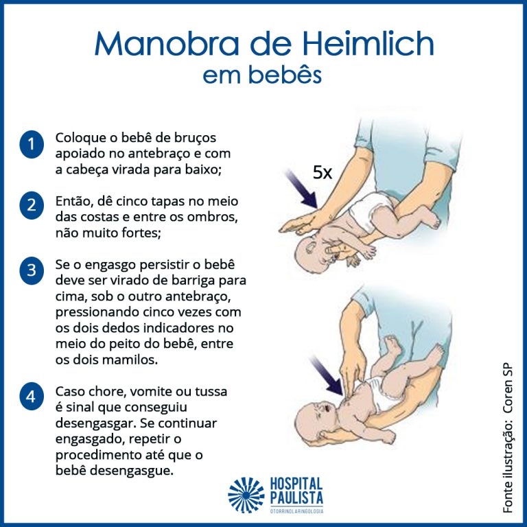 A manobra de Heimlich acontece de formas diferentes em bebês e em crianças de um ou dois anos, conforme se pode observar nas figuras abaixo, no entanto, a manobra para bebês foi utilizada pela equipe em razão de a criança estar desacordada.