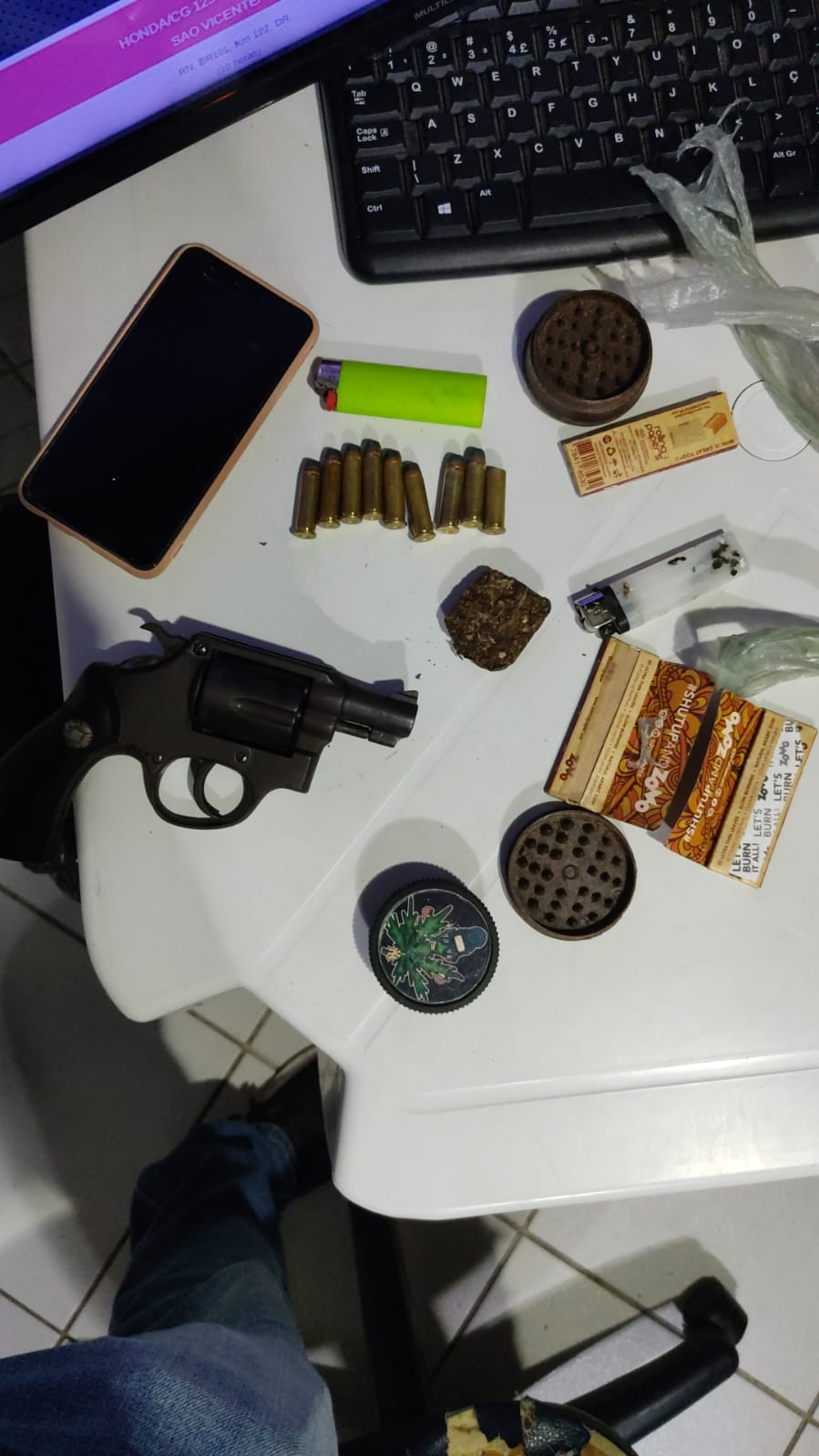 A prisão se deu durante abordagem a um Siena de cor preta. Durante análise do veículo, os policias constataram que os sinais identificadores estavam em parte adulterados e em parte violados, o que motivou uma busca no interior do carro. No interior do automóvel foram encontrados: um revólver calibre .38 com queixa de furto, 8 munições de mesmo calibre intactas e uma deflagrada, além de uma pequena porção de maconha, três embalagens de seda, um dichavador de fumo e três isqueiros.