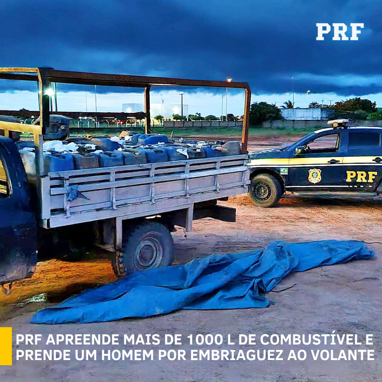 Neste final de semana, durante fiscalizações nas BRs 174 e 401, a Polícia Rodoviária Federal (PRF) apreendeu mais de 1.000 L de combustível que estavam sendo transportados de forma ilegal e prendeu um homem por embriaguez ao volante.
