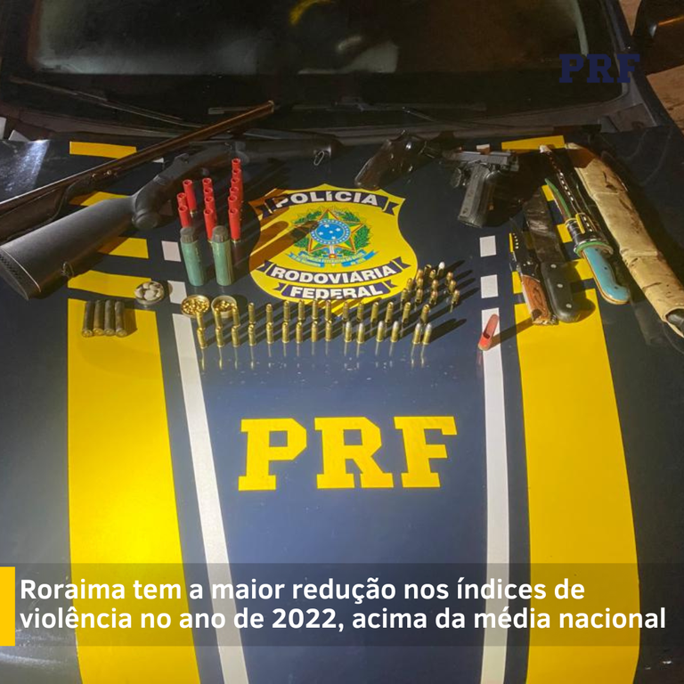 No mesmo período comparativo, a Polícia Rodoviária Federal (PRF) em Roraima teve um aumento nas apreensões de munições (227%), armas de fogo (61%) e prisões por crimes diversos (24%), sendo 374 pessoas detidas no total. Ainda, foram recuperados 128 veículos adulterados ou com restrição de roubo/furto.