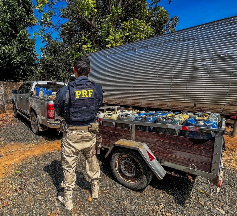 No veículo havia 37 recipientes contendo diesel, totalizando 1.850 L de combustível.