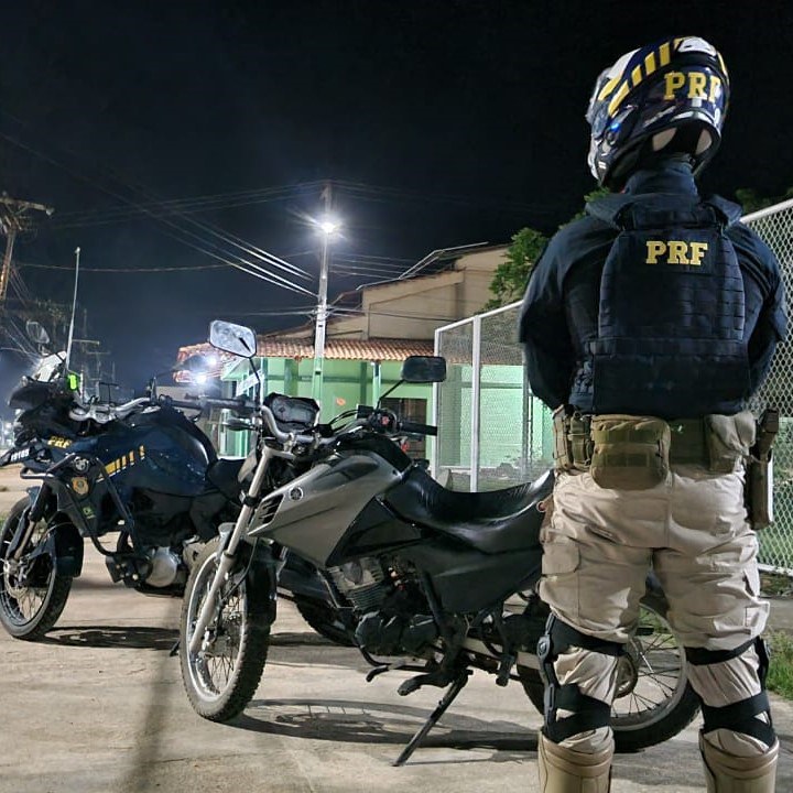 Durante fiscalização no km 450 da BR 174, uma equipe realizou consultas a uma motocicleta que estava estacionada às margens da rodovia. Foi constatado que o veículo havia sido roubado há menos de dois meses.