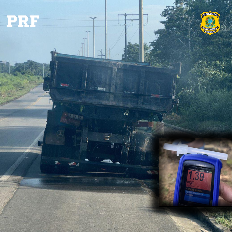Durante a abordagem de um caminhão carregado com areia, o motorista apresentou visível estado de embriaguez. O teste do etilômetro constatou alto teor alcoólico. Valores a partir de 0,3 mg/dL são considerados crime. O homem não resistiu, foi preso e apresentado à Polícia Civil de Mucajaí.