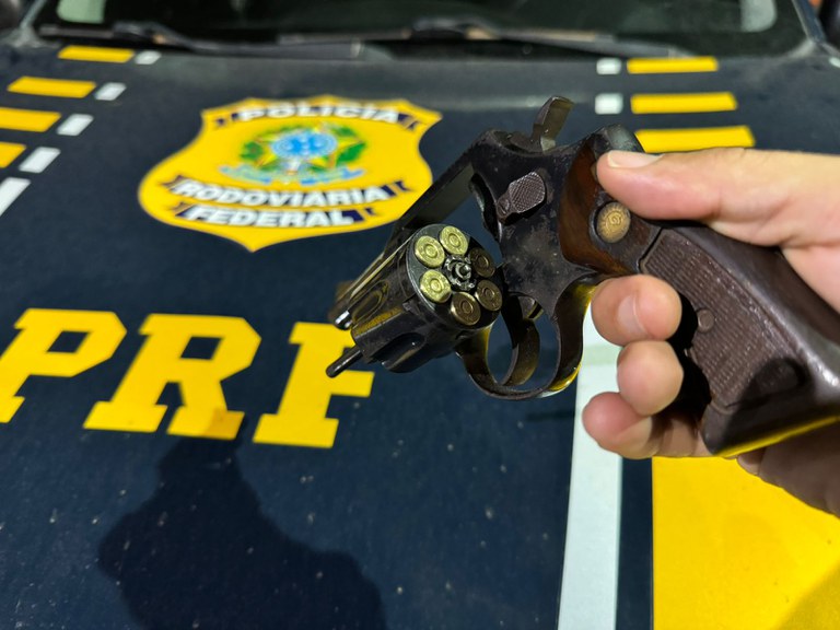 Ainda na BR 174, durante abordagem a um caminhão, outro revólver cal .38 e mais seis munições foram apreendidas. O homem foi preso e encaminhado para a Polícia Civil.
