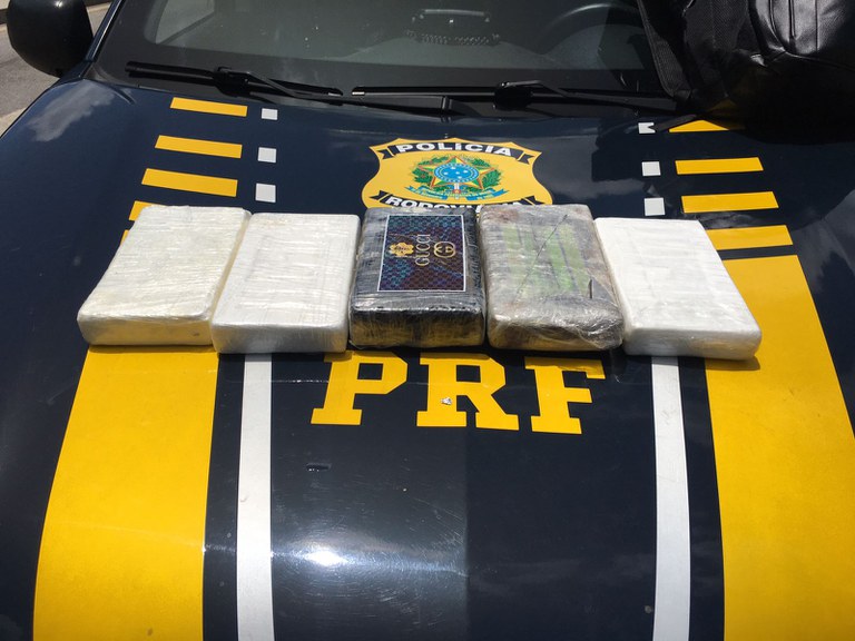 Ao realizar uma inspeção minuciosa no interior do veículo, os policiais obtiveram êxito ao encontrarem uma mochila contendo 5 tabletes de substância compatível à cocaína.