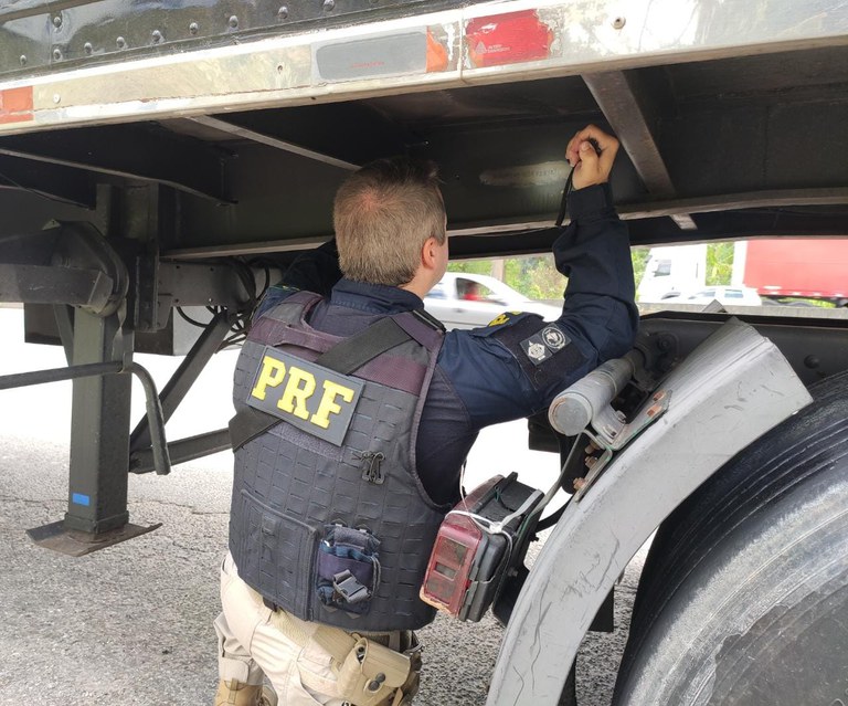 No dia 18/02, por volta das 11 horas, uma equipe da PRF avistou uma carreta bloqueada pela rastreadora no acostamento do KM 286 da BR 116, no município de Itapecerica da Serra, e se deslocou para fazer a fiscalização.