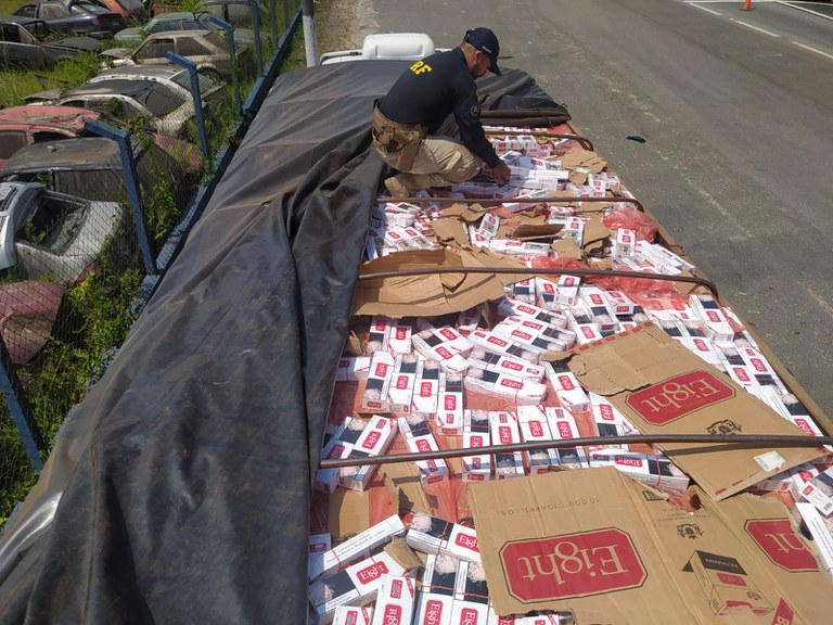 PRF apreende mais de 200.000 maços de cigarro paraguaio na Régis Bittencourt