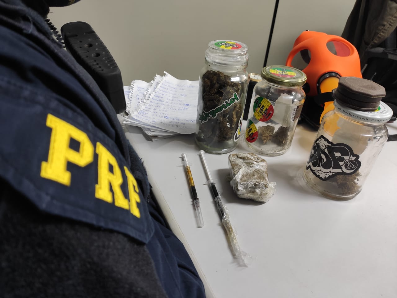 Logo ao entrar no imóvel, os policiais encontraram vestígios de uso de drogas e sem muita dificuldade, encontraram diversos frascos com maconha somando aproximavam 500g da droga, além de apetrechos para potencializar o efeito, máscaras e seringais.