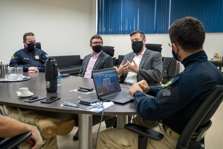 Participaram também da reunião o Superintendente da PRF no Rio Grande do Sul, Luís Carlos Reischak Júnior, o Coordenador de Articulação Internacional, Otavio Augusto e o Assessor de Comunicação, Mateus De Paula.